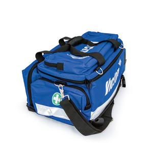 Heavy duty vinyl, multi pocketed bag designed for easy access to separate incidentals. Heavy duty zippered pockets on top and side of bag. Reflector strip for high visibility.